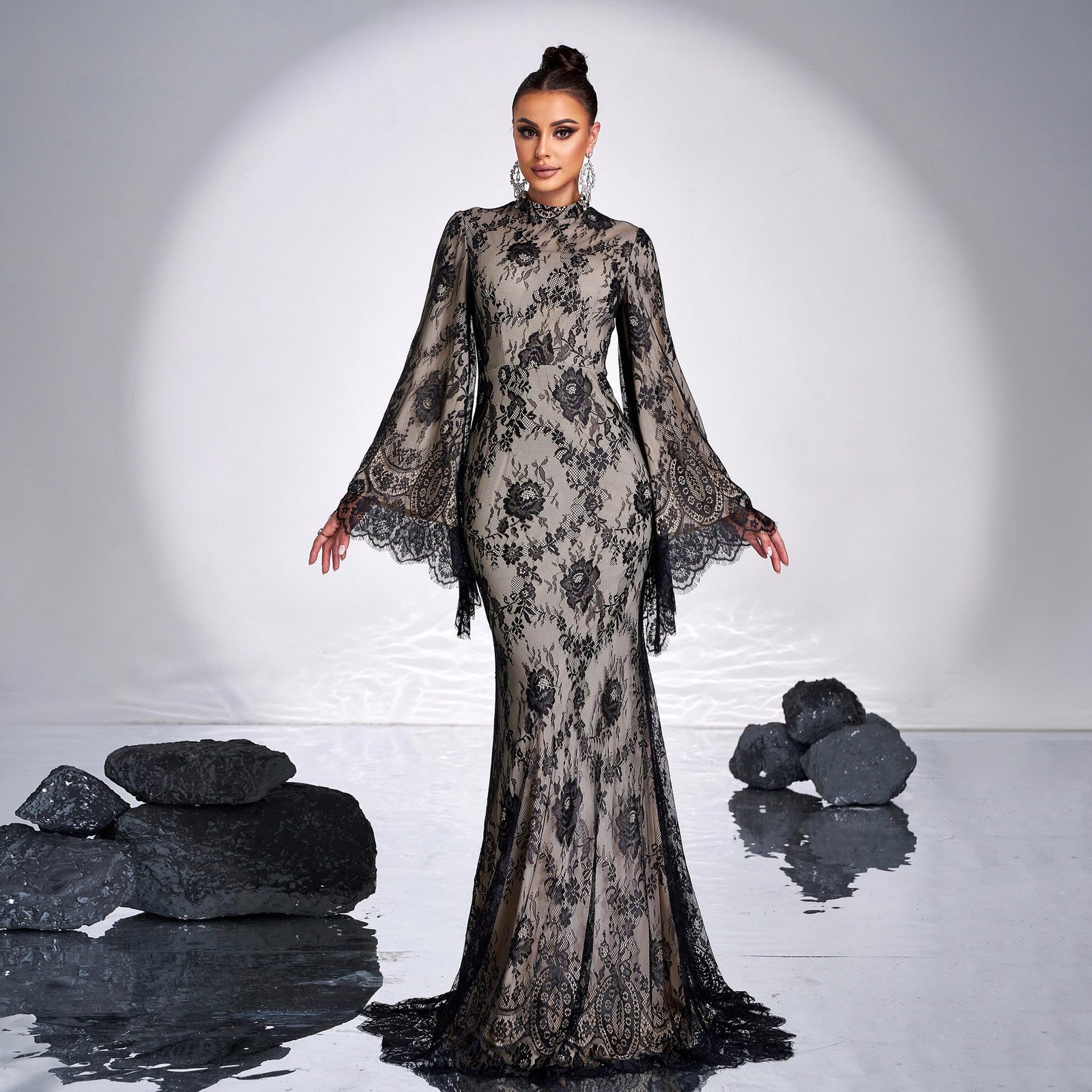 Long Sleeve Round Neck Sexy Lace Banquet Dress