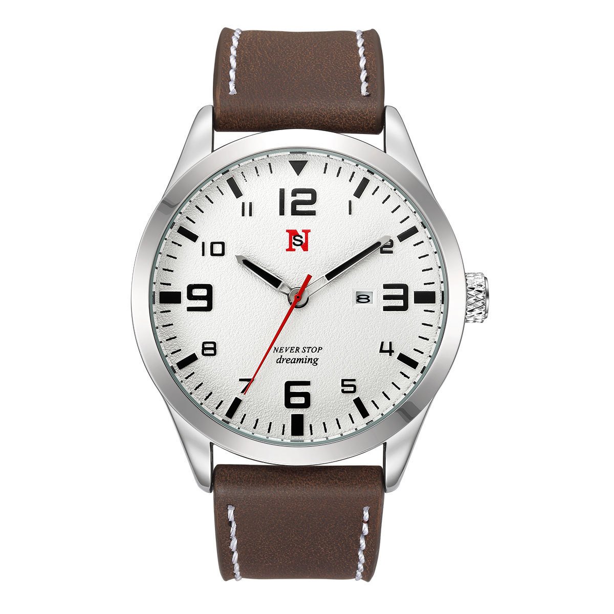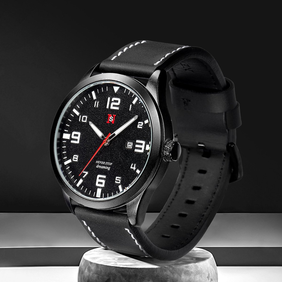 Mens Quartz Watch With A Leather Strap Large Dial And Calendar