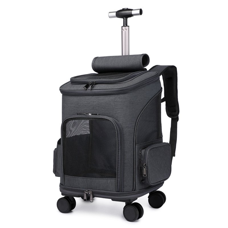 Portable Folding Trolley Pet Backpack Traveling Cat Backpack With Universal Wheel Trolley Pet Bag