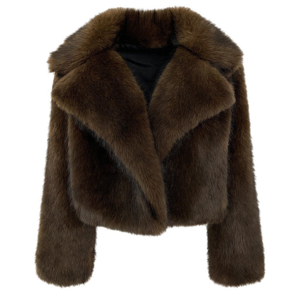 Stylish Short Winter Coat With A Suit Collar And Faux Fur Trim