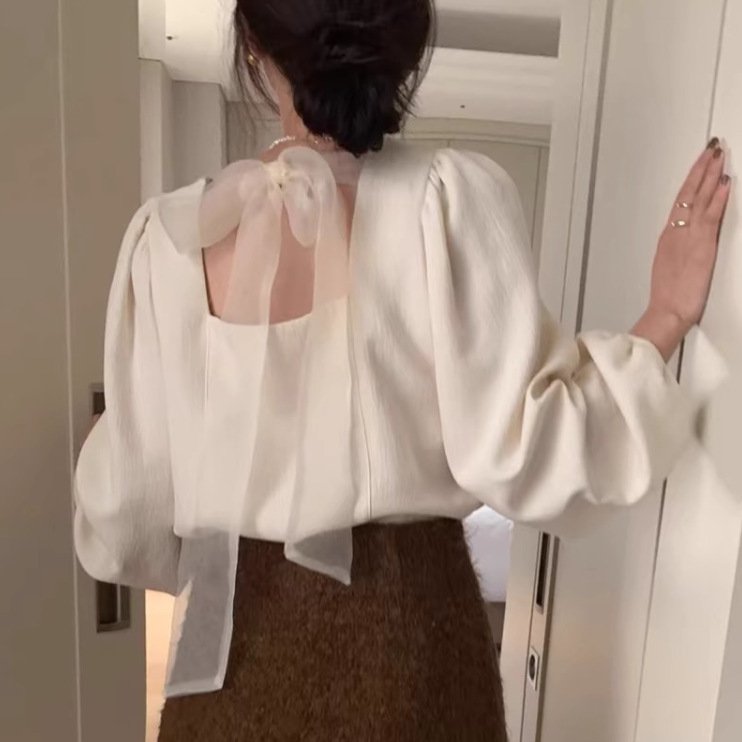 Be the first to review “Womens Solid-Color V-Neck Backless Tie-Up Bow Loose All-Match Top”